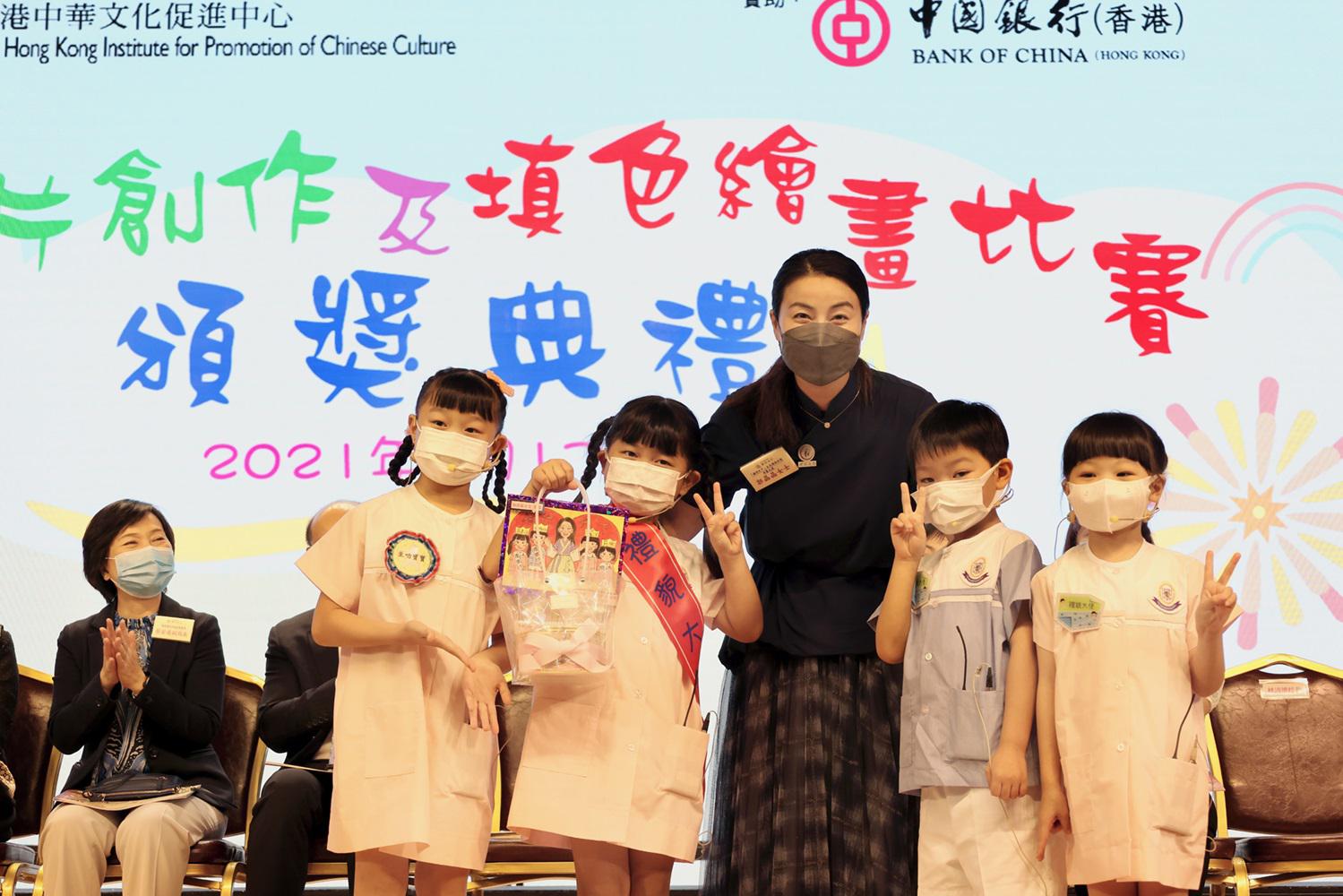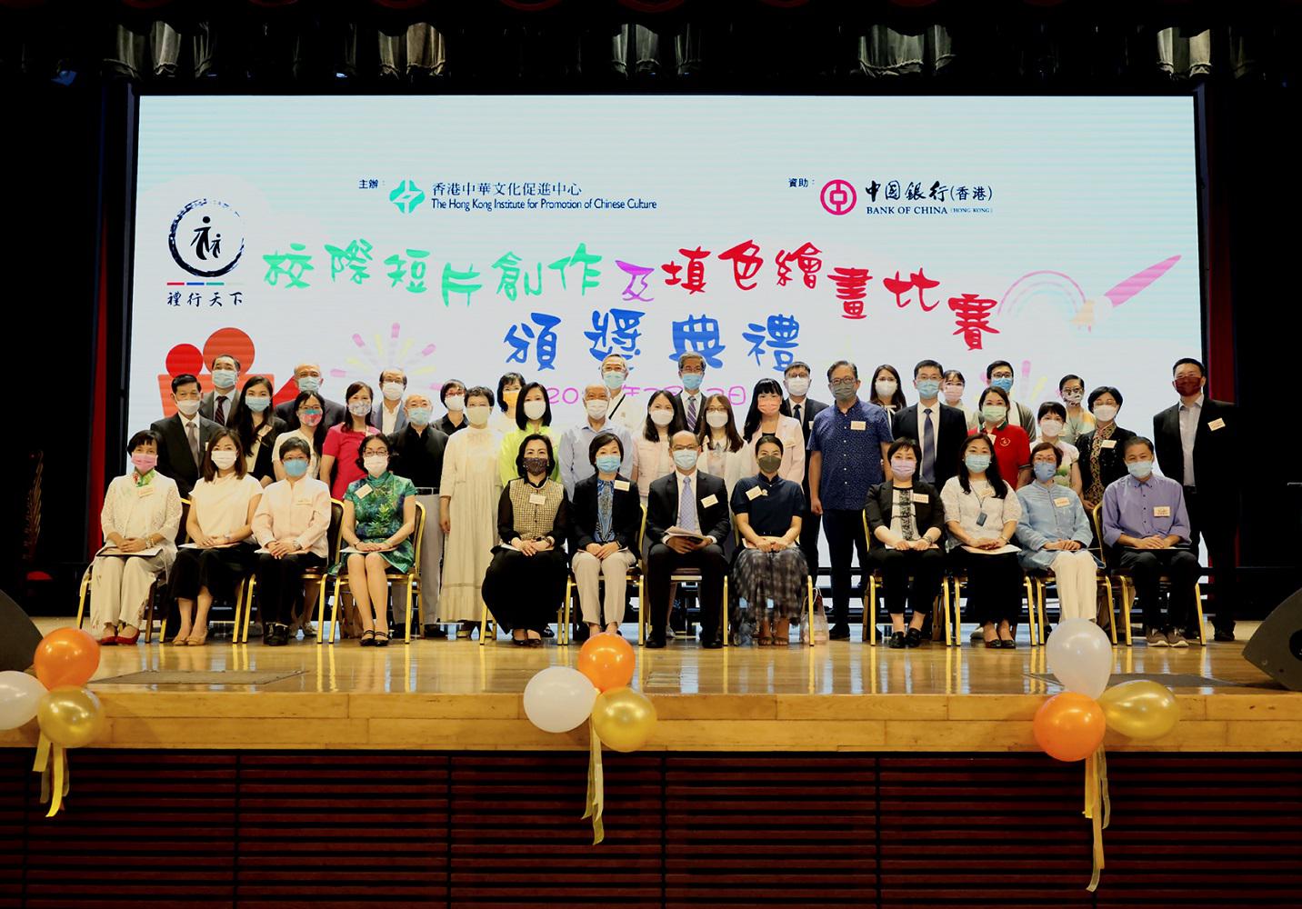 由香港中華文化促進中心主辦、中國銀行(香港)資助的「禮行天下」校際短片創作及填色繪畫比賽頒獎典禮日前(2021年7月17日下午)在尖沙咀會堂隆重舉行,香港特區政府教育局副局長蔡若蓮博士、中聯辦教育科技部巡視員易飛先生、中國銀行(香港)總法律顧問簡慧敏女士、「禮行天下」形象大使郭晶晶女士、香港中華文化促進中心理事會副主席崔綺雲博士擔任主禮嘉賓,數百位幼稚園、小學的老師、同學和家長出席。