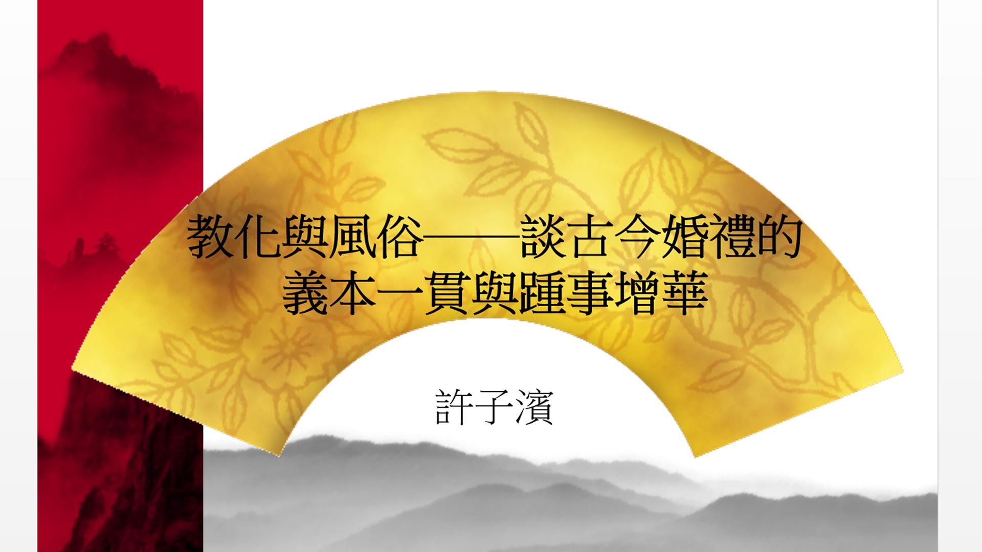 主講:許子濱教授(嶺南大學中文系系主任) 內容:夫婦為人倫之始,故婚禮實為百禮之本。古今婚禮一脈相承,大體以朱子《家禮》及《儀禮.士昏禮》